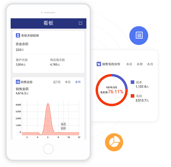 多维度展示数据,方便及时了解公司经营数据,辅助经营决策